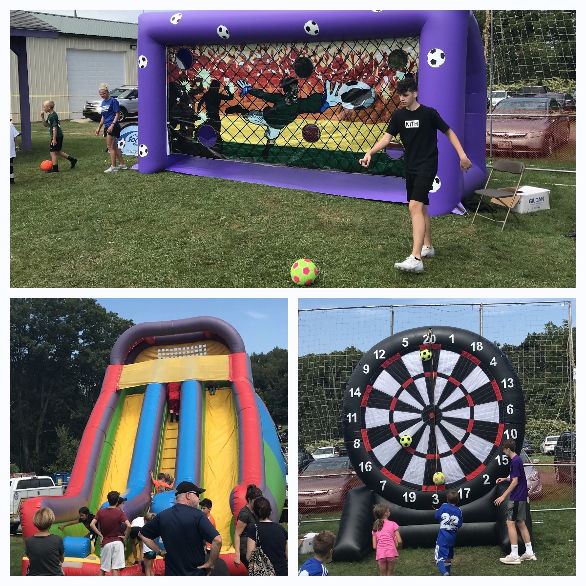 We will have many activities for the kids and a variety of food and drink options at the main fields (Larry Mills Park). In past years we have had a soccer dart board, photographer, soccer activities, merchandise sales, and much more. Be sure to stop by and play a game of soccer darts at our large inflatable dart board, or test your shooting skills at our inflatable target.